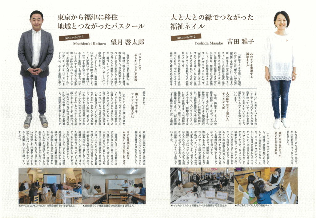 福岡県福津市 2023.11月号広報ふくつに掲載されました! 2023.10.27 メディア掲載 Tweet Share RSS Pin it 福岡県福津市で福祉ネイル活動について 佐賀みやき校卒業の吉田雅子さんが取材を受けました。 Tweet Share RSS Pin it メディア掲載 2023年4月21日神戸リビングに掲載されました! 高齢者を地域で支える地域包括ケアシステムとは ピックアップ記事 お知らせ 第4回研究集会が2023年11月4日(土)に開催決定! 2023.09.07お知らせ, ブログ 関連記事一覧 ブログ 第3回研究集会及び第6回福祉ネイリストアワードが開催されまし... 2022.07.30 お知らせ 【認知症患者へのネイル介入の研究】 2020.06.08 お知らせ 『公益財団法人B&G財団様「B&Gフレン... 2025.02.11 ブログ 老人ホーム・介護施設 見学時に押さえておきたい重要ポイント 2023.03.30