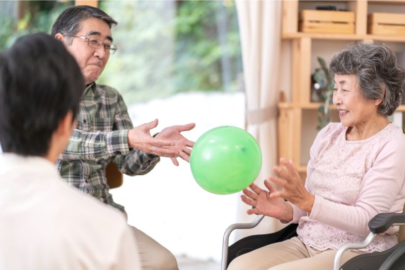 また、認知症の方の中には会話によるコミュニケーションが難しい人もいますが、風船バレーなら会話ができなくても非言語コミュニケーションによって交流が図れるというメリットがあります。