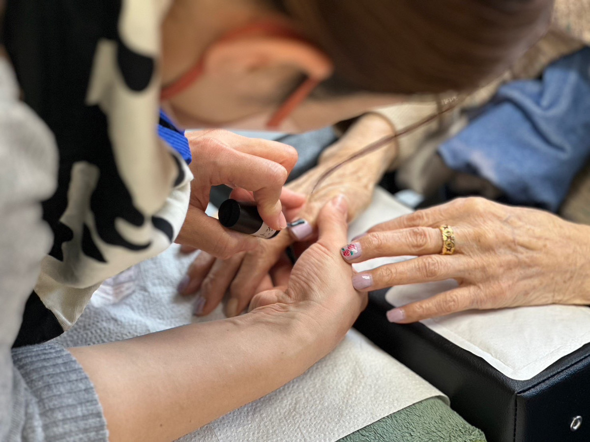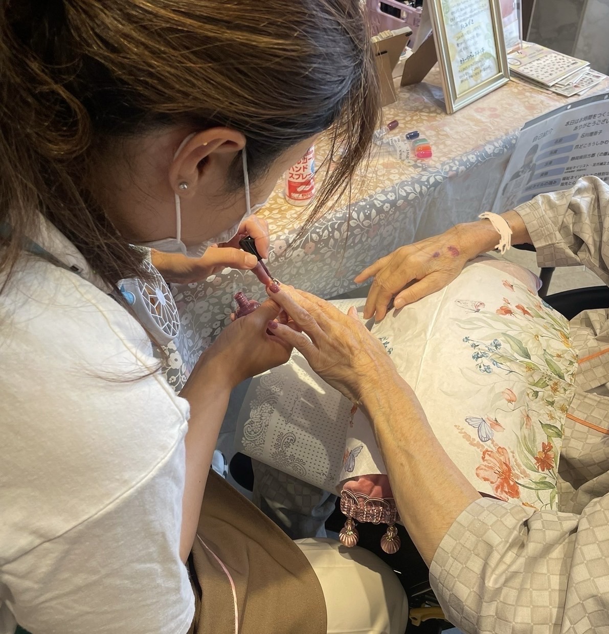 手と手で触れ合い、やり場のない気持ちさえも、ただ温かく受け止める。大切な福祉ネイルの時間。