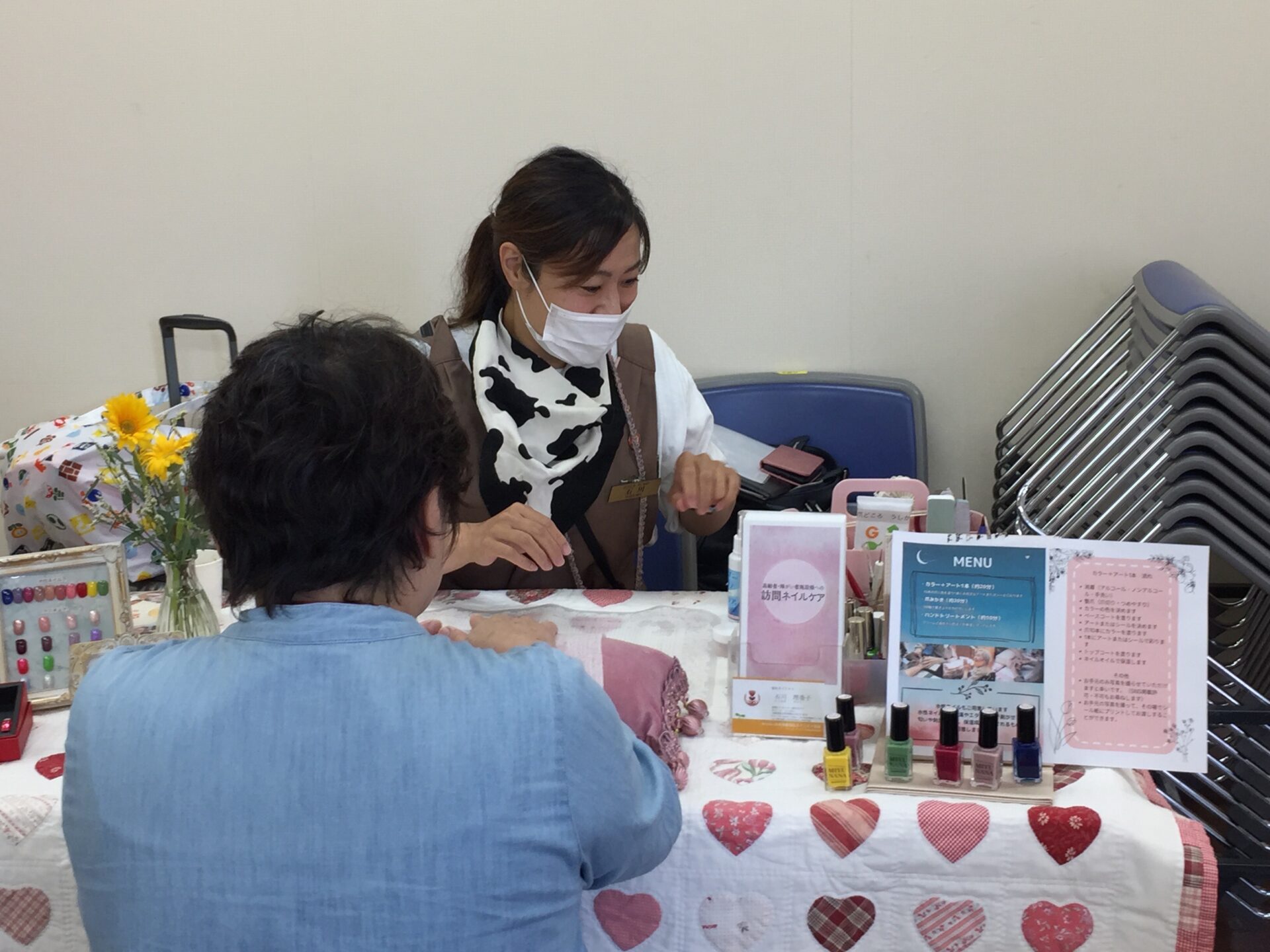 月に1回は、病院の緩和ケア病棟へ福祉ネイリストとして定期訪問に伺っています。その他は、イベント出店や地域のがんサロンに参加して、広報活動なども行っています。