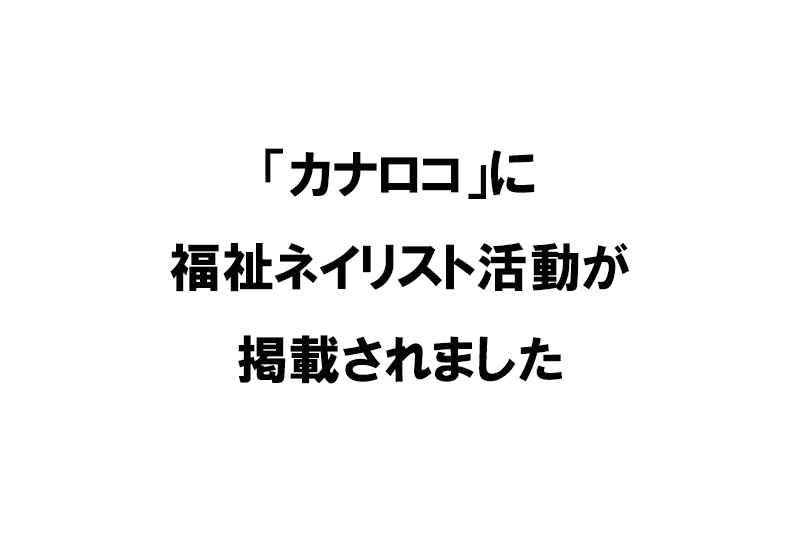 ニュースサイト「カナロコ」に福祉ネイリスト活動が掲載されました。 2018.12.19 メディア掲載 Tweet Share RSS Pin it 爪に彩り、お年寄りに笑顔を 福祉ネイリスト島田さん(大阪塚本校ご卒業〜現在新宿校所属) https://www.kanaloco.jp/news/life/entry-40504.html Tweet Share RSS Pin it メディア掲載 介護看護子育てに関するサイト「kirara」にて理事長のインタビュー掲載さ... みんなの介護に佐藤三矢先生の記事が掲載されました。 ピックアップ記事 お知らせ 第4回研究集会が2023年11月4日(土)に開催決定! 2023.09.07お知らせ, ブログ 関連記事一覧 ブログ 高齢者を地域で支える地域包括ケアシステムとは 2023.11.09 メディア掲載 全国理美容新聞Vol.03に掲載されました。 2016.05.09 ブログ 大阪府大阪市【かがやきデイサービス平野南第二】様で福祉ネイル 2020.08.22 利用者様の声 今後も”楽しむこと”や”... 2015.07.29