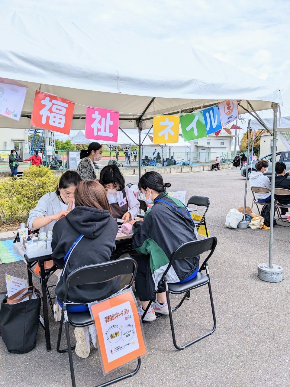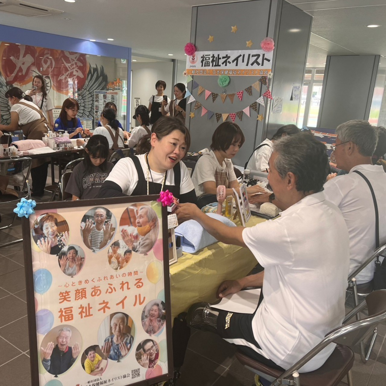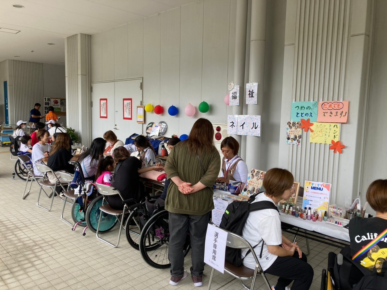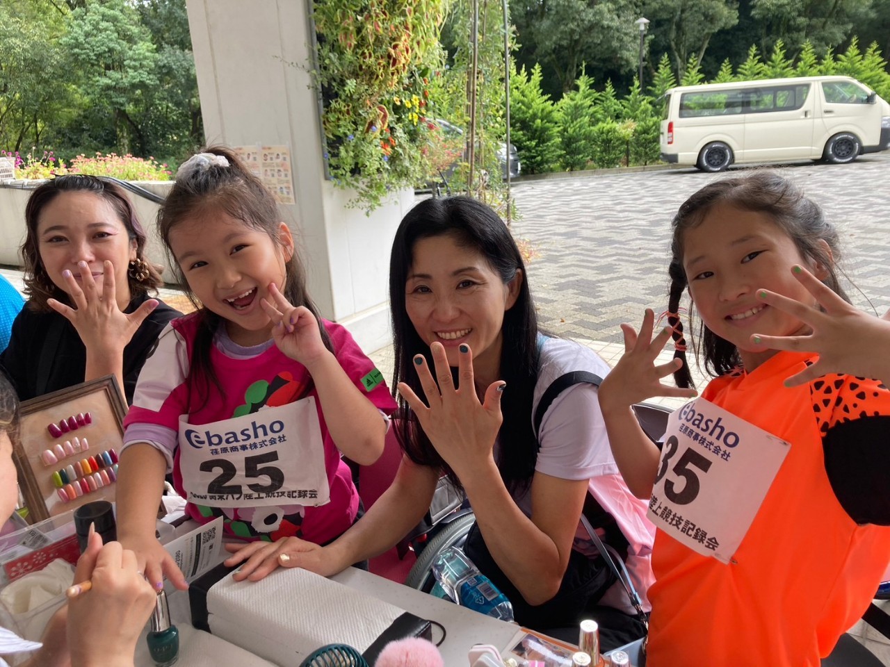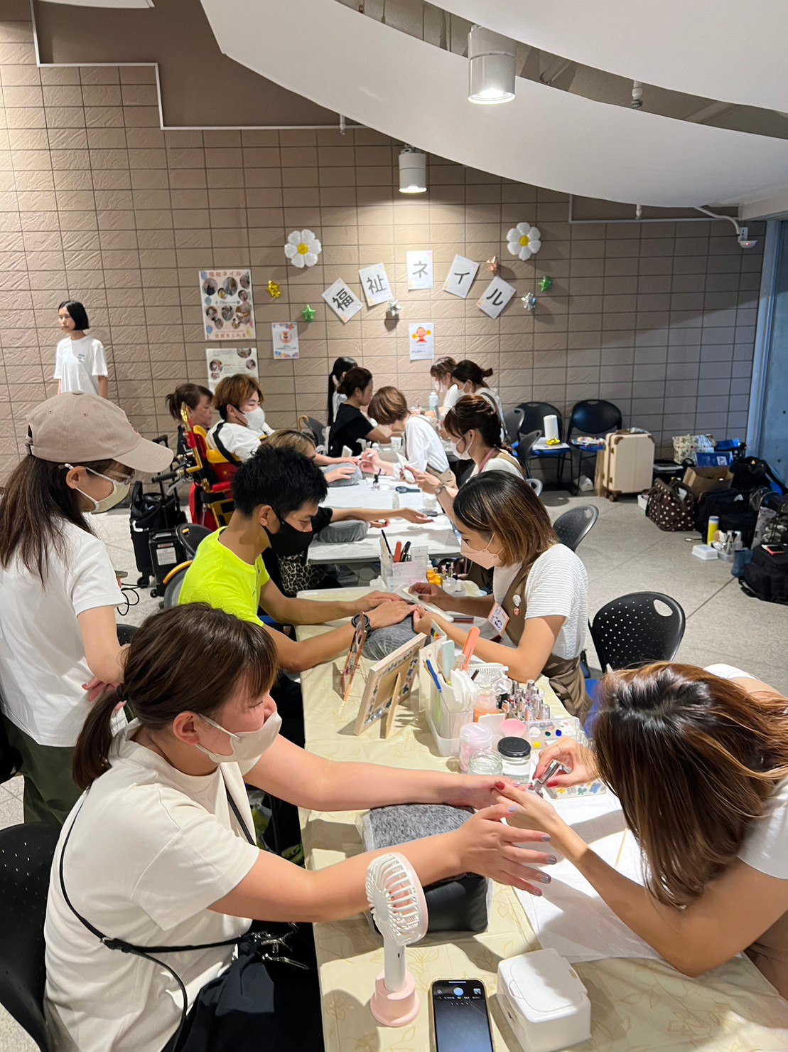 障がいを持つ方やご家族様と接する機会がこれまでほとんどなかったので、いろいろな想いや考えを直接聞くことができて、私自身たくさんのことを考えるきっかけをいただきました。ネイル施術を受けた子どもたちがたくさん宣伝をしてくれ、他の選手・関係者の方もたくさん訪れてくれました。そのため、会場は、終始和やかな雰囲気で、本当に皆さんの笑顔溢れる空間になっていました。