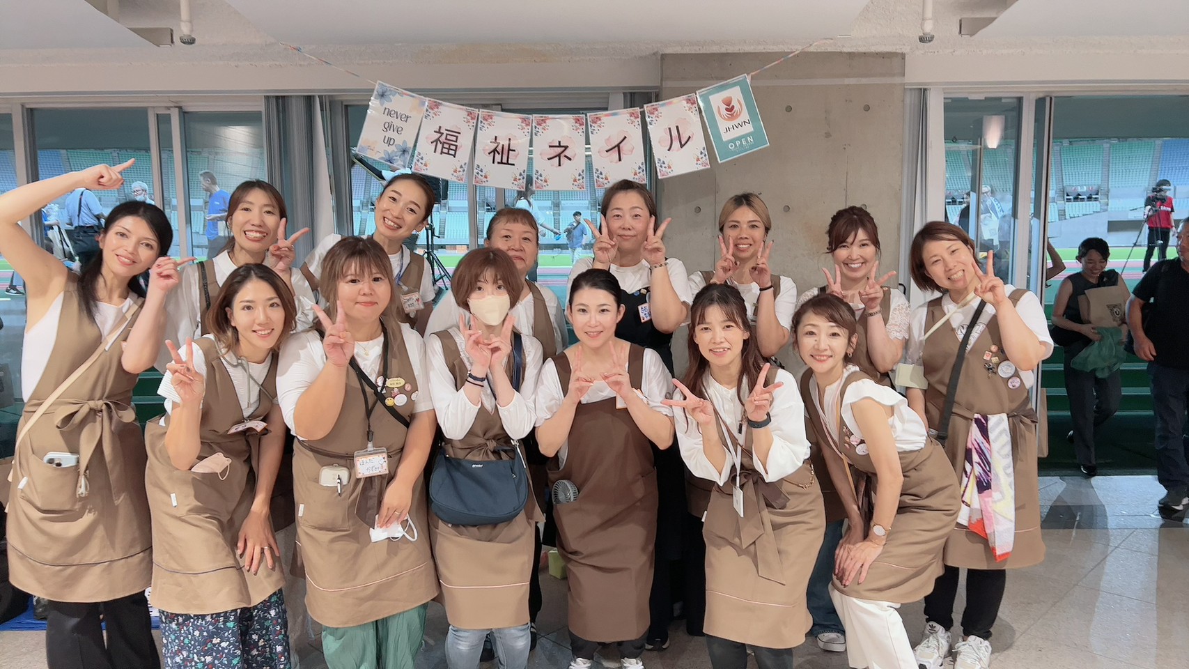 認定講師5名を含む、21名の福祉ネイリストたちが参加。選手や大会関係者、合計32名の方々にネイルカラーリングや爪磨き、ハンドトリートメントを施術させていただきました。