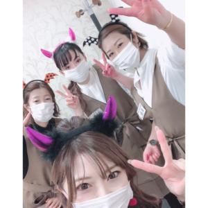 ハロウィンにちなんでプチ仮装をして臨んだ私たち♡