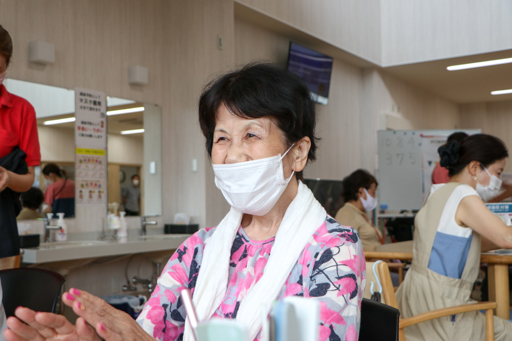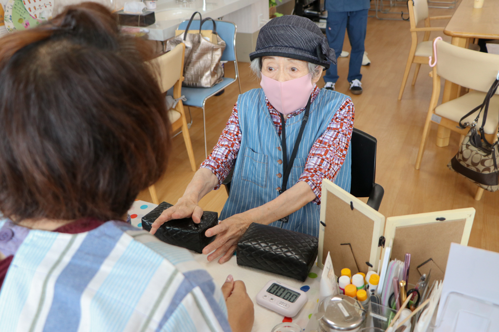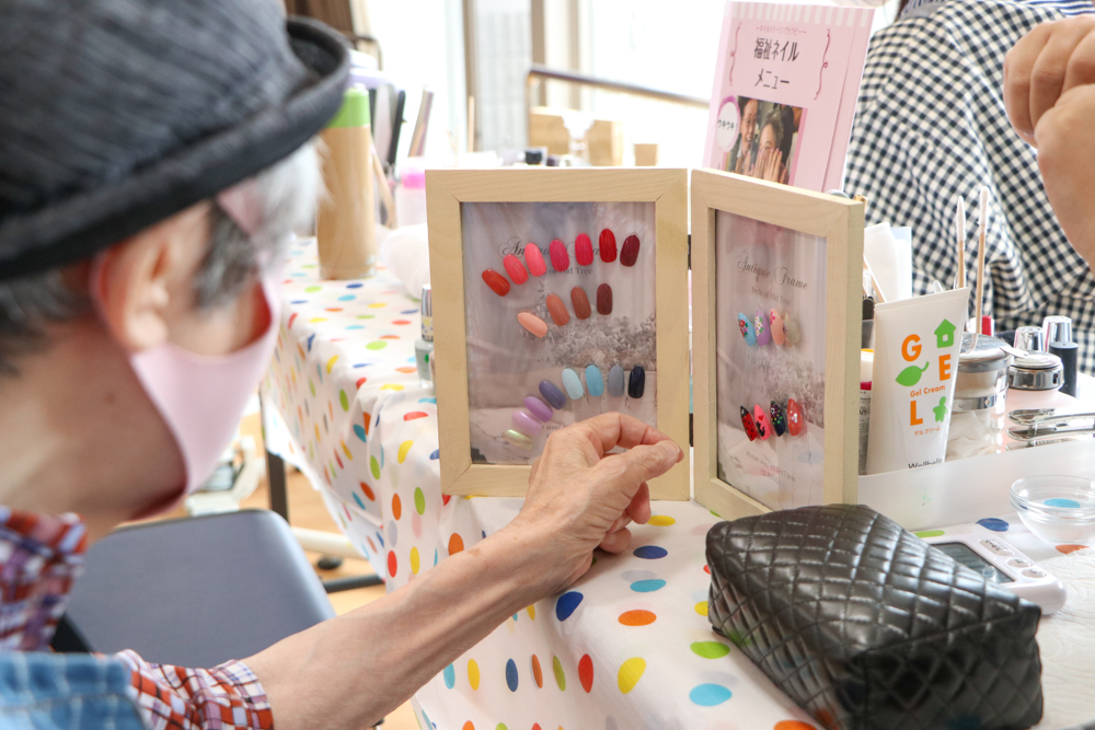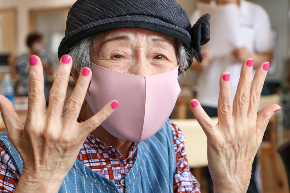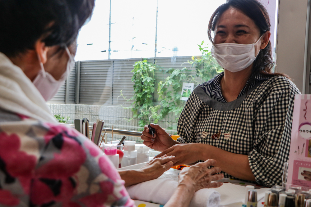 施術をさせて頂いた利用者さまはとても笑顔の素敵なおしゃれな女性の方で『今日はネイルをしてもらうから、おしゃれしてきたの』と嬉しそうにお話してくださいました。
